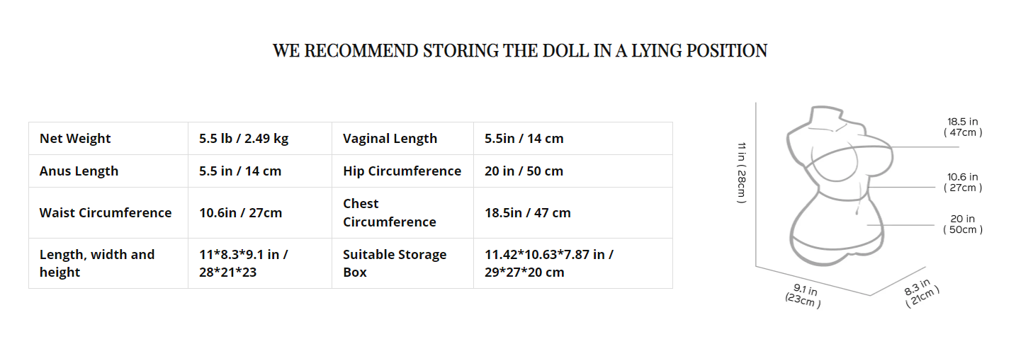 ● Make sure to store your sex doll torso in a cool and dry place.
