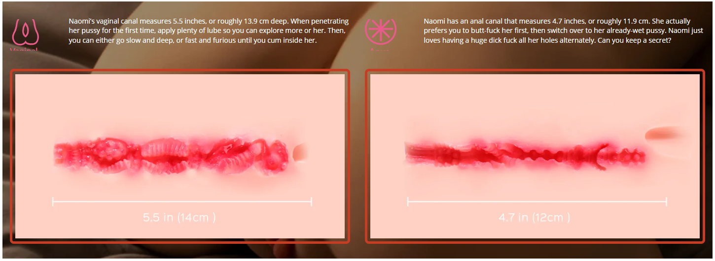 This sex doll’s soft TPR skin feels almost like a real girl, and she won’t budge too much when you’re busy filling her up with your cock. Here’s a secret for you- Naomi actually likes it when you pound her hard and make her scream for more!